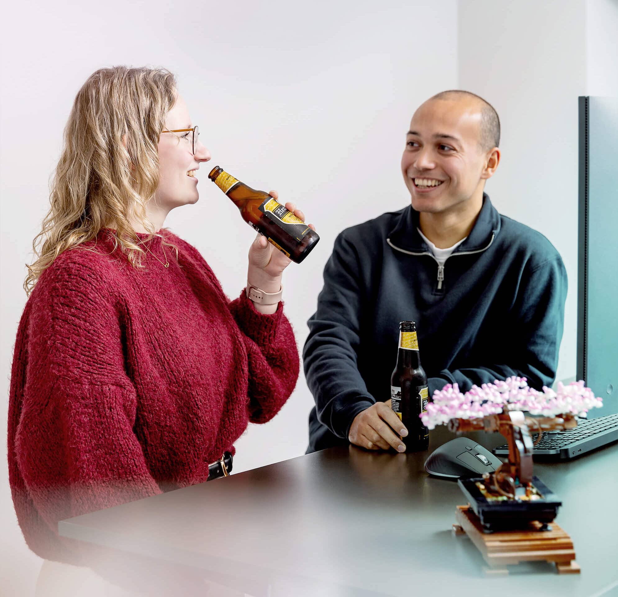 “Mensen komen graag naar hun werk, willen elkaar graag helpen en als groep samen iets bereiken. Ook buiten het werk hebben collega’s veel contact. Met borrels, maar bijvoorbeeld ook sportactiviteiten word je gestimuleerd om elkaar op te zoeken.